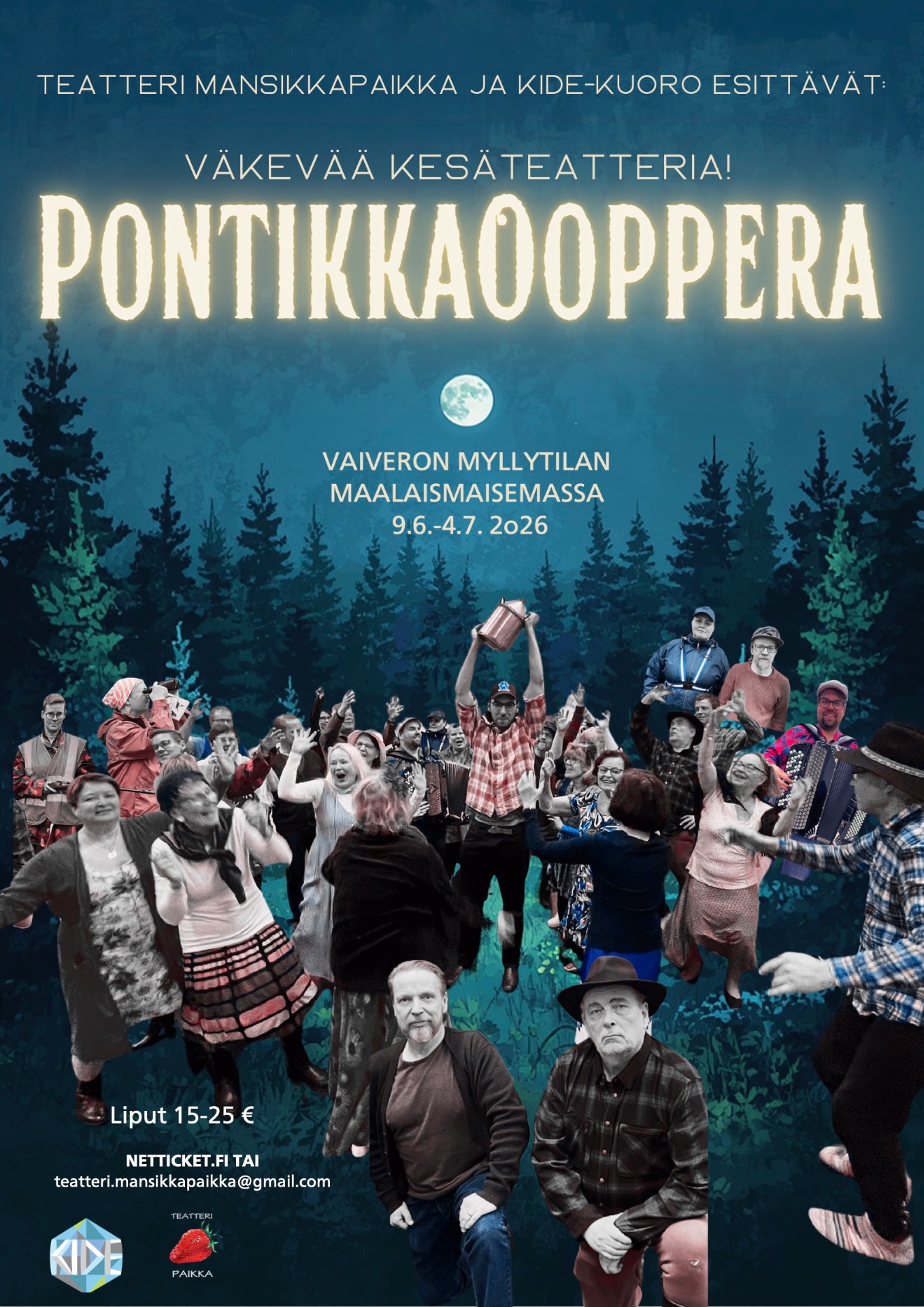 15:00 Pontikkaooppera Teatteri Mansikkapaikka ja Kidekuoro, avoimet kenraaliharjoitukset